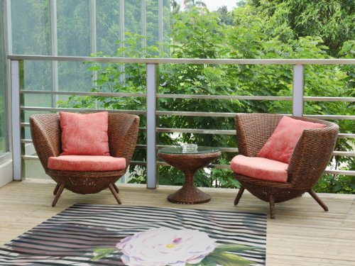 Kess InHouse S. Seema Z "Peony n White Black" Indoor/Outdoor Floor Mat, 4 by 5-Feet