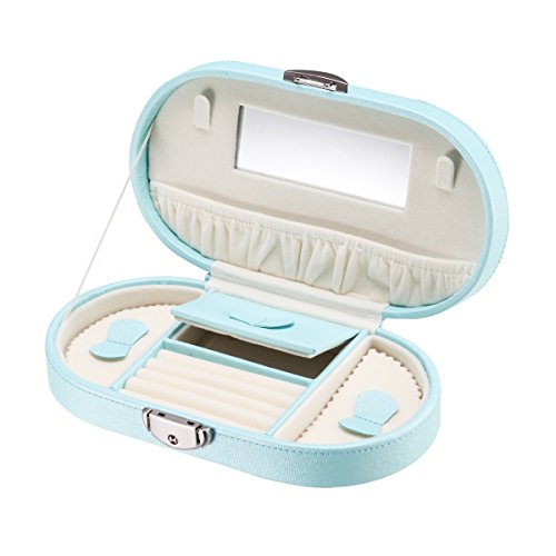 Travel Jewelry Box Organizer for Women Girls - Faux Leather Earrings Rings Necklaces Storage Case Holder - w/Key to Lock Up - Best Wedding Gift (Blue)