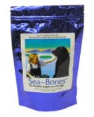 Sea~Bones® are a specially formulated, semi-moist, bone-shaped healthy dog treat product for smaller breed dogs. Contains no beef or wheat, so they are easy-to-digest. Ingredients include Glucosamine HCL and our patented Sea Chondroitin® to help support and lubricate your dog's joints. Sea~Bones® are delivered in an attractive, re-sealable pouch with approximately 50 bone-shaped jerky pieces. Two Sea~Bones contain: Active ingredients: Sea Chondroitin®* 375mg, Glucosamine HCL 140mg, MSM 18mg, Green Tea Extract 1mg. Inactive ingredients (alphabetically): barley flour, calcium ascorbate, chicken, flax seed, garlic flavoring, gelatin, glycerin, honey, kelp, mixed tocopherols, natural smoke flavor, oat flour, phosphoric acid, potassium sorbate, rice flour, sea salt. * Sea Chondroitin® is a Coastside Bio Resources trademark for sea cucumber prepared by a patented process. Quantity: 8 oz. (about 50 bones) Recommended Amount: Two bones per day for every 10 to 20lb. of dog weight. Cautions: Safe use in pregnant animals or animals intended for breeding has not been proven. Consult with your veterinarian before using this product in animals with clotting disorders, diabetes, or any metabolic disorder causing hyperglycemia, history of urinary tract stones, known allergies to shellfish. If lameness worsens, discontinue use and contact your veterinarian. Administer during or after the animal has eaten to reduce incidence of gastrointestinal upset. An examination from a veterinarian is recommended prior to using this product.
