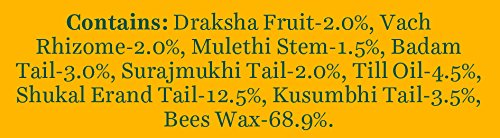 Angur (Vitis vinifera), Vach (Acours calamus), Mulethi (Glycyrrhiza glabra), Badam (Prunus amygdalus), Surajmukhi (Helianthus annus), Kusumbhi (Carthamus tinctorius), Til (Sesamum indicum), Erandi (Ricinus communis), Madam bass Q.S.