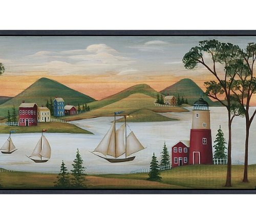 -. Title : Blue Nautical Sailboats Wallpaper Border 54031 GG