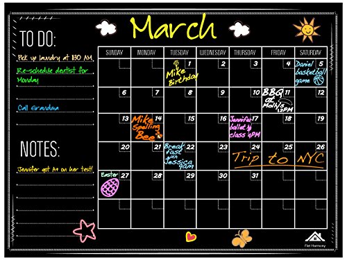 -. Title : Large Chalkboard Wall Calendar Planner by Flat Harmony - Weekly and Monthly Organizer - 23'' x 18'' - For Office, Kitchen and Refrigerator Erasable and Durable Sticker Decal