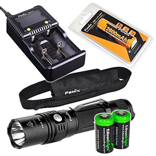 Fenix PD35 TAC 1000 Lumen CREE LED Tactical Flashlight with genuine Fenix ARB-L2 battery, Fenix ARE-C1 Plus battery Charger and Two EdisonBright CR123A Lithium Batteries bundle