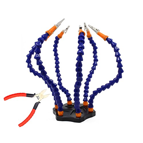 CloverTale Third Hand Soldering Holder Tool Six Arms Helping Hands Crafts Workshop Helping Station Non-slip Aluminum Base Wire Cutter Plier (Solder)