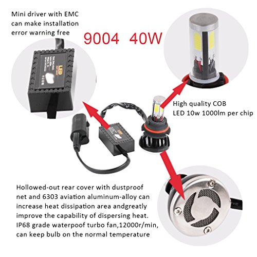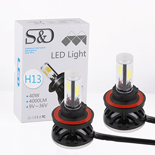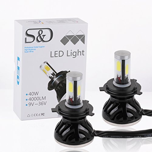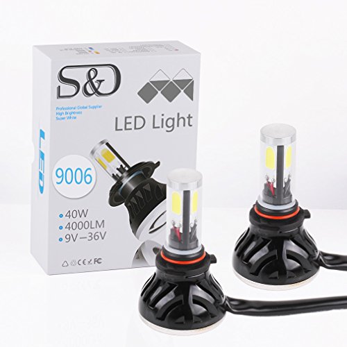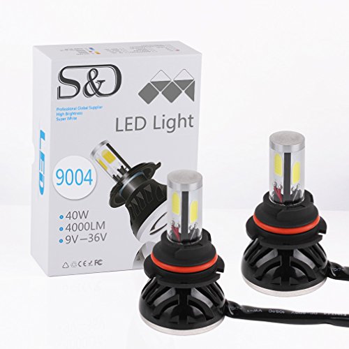 S&D 9004 HB1 80W 8000LM LED Headlight Conversion Kit 6000K COB Bulbs Car White Lights (2x40w/4000Lm) One Pair