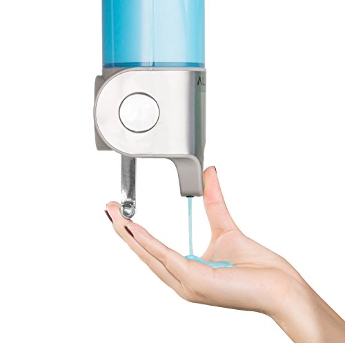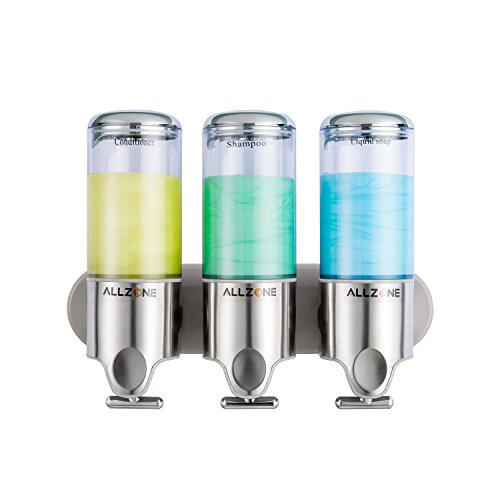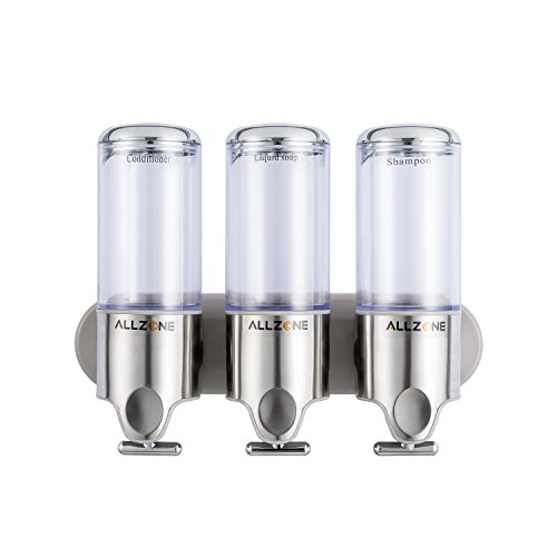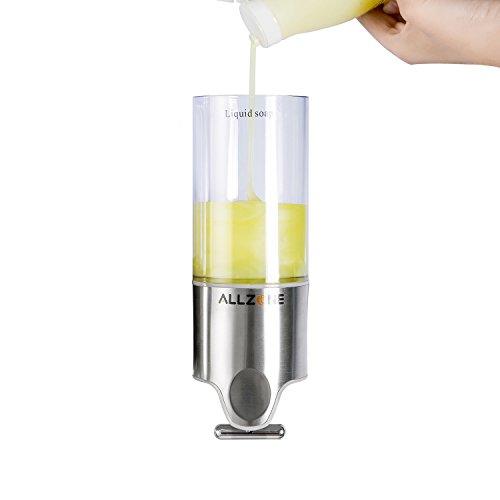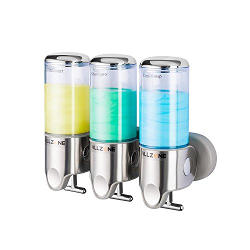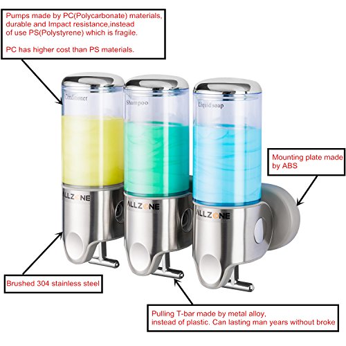 ALLZONE Powerful Suction Cup Shower Soap Dispenser, PC Transparent Pump, Stainless Steel Panel, Zinc Metal T-bar