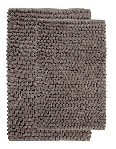 Saffron Fabs 2 Piece Bath Rug Set, Cotton and Microfiber, Size 34x21 Inch and 36x24 Inch, Round Loop Bubbles Pattern, Latex Spray Non-Skid Backing, Grey, Handloom Heavy 200 GSF Weight, Rectangular