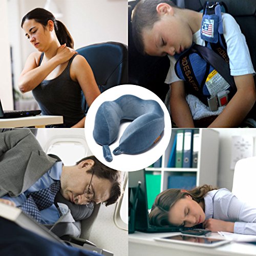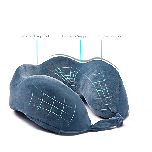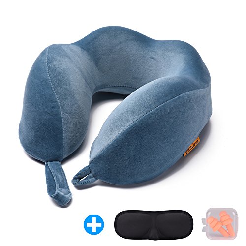 Memory Foam Victuna Travel Neck Pillow Kit Ergonomic U Shape Set with Washable Velvet Cover, Carry Bag, Eye Mask and Ear Plugs