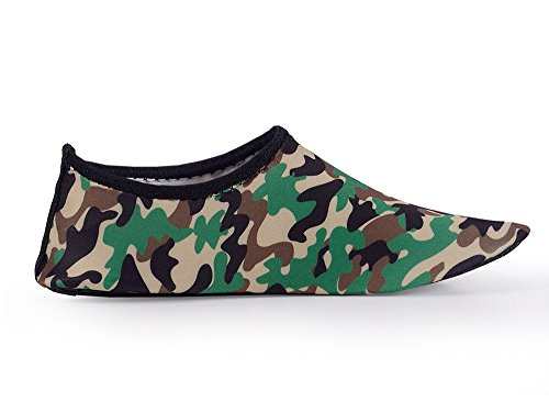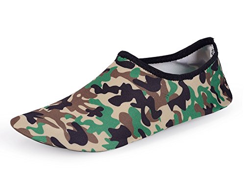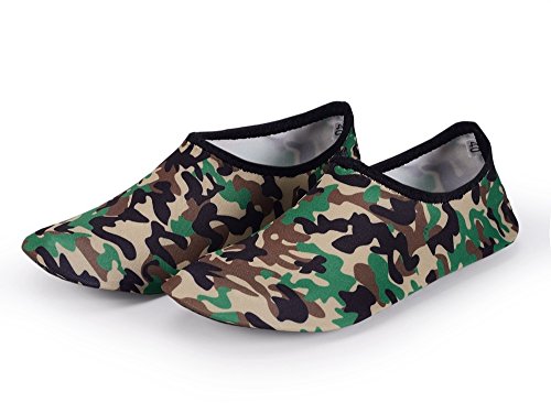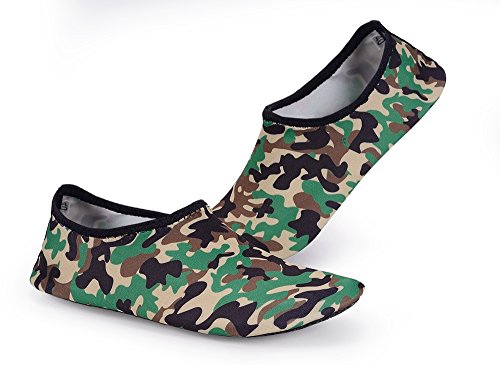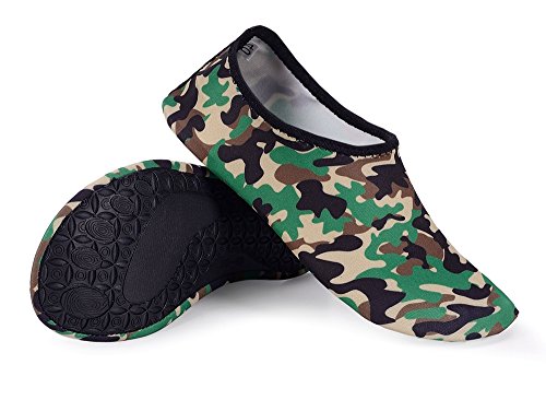 Product Description Breathable and smooth fabrics with fine stretch on uppers, flexible and comfortable. Smooth designed neck prevents chafing when wearing our water shoes. Polybag Packaging--Easy carry in every sports. Various Size Available--camo green and blue: many sizes to fit different feet.Men and women size are available