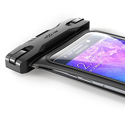 NexCase Super Rugged Protective Waterproof [Dry Bag] Case with Neck The NexCase waterproof case gives you complete confidence in taking your iPhone or other smartphone, or even valuables such as case, ID, passport, credit cards, cash, or driver's license, with you into even the harshest of environmental conditions... You will still be able to leverage touch screen, camera, listen to music and make phones calls while your phone is in the case! Not only that, the NexCase case is IPX8 certified to 30ft so you can take your phone with you underwater while you fish, wade, swim, scuba dive or canoe...To make things more interesting, you can even be able to take underwater photos and videos. Our case is made with contemporary and rugged design. It is very stylish while made from the most environment friendly materials and help to keep our planet clean. Our case is designed to fit Apple iPhone and all other major smartphone's including the Apple iPhone 6s and iPhone 6s Plus 6 6 Plus 5S 5C 5; Samsung Galaxy S7 and S7 Edge S6 S5, S4, the Galaxy Note 5 4 3 3; HTC One M10 M9 M8 M7 M4, and LG Optimus G5 G4 G3 G2; Nokia and Sony... The innovative, easy to use, tap lock system makes it simple to secure your device in the case.