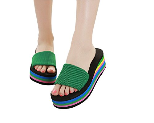 -. Title : ヤング(Young) レディース サンダル おしゃれ ビーチサンダル ぺたんこサンダル 女優愛用 美脚 夏 厚底 スリッパ トングサンダル 歩きやすい 滑りにくい 軽量 ヒール6cm 3色 グリーン