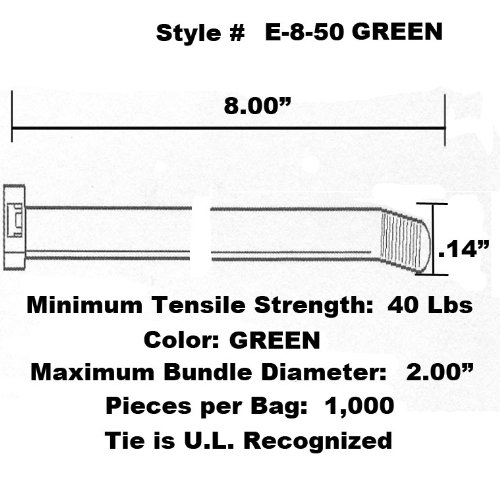 Tach-It 8" x 40 Lb. Tensile Strength Green Colored Cable Tie (Pack of 10)