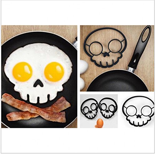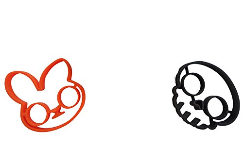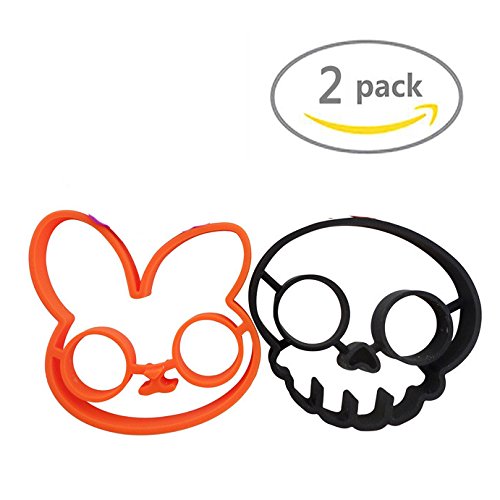 Fried Egg Molds, Cute Rabbit & Skull Nonstick Silicone Egg Ring Maker Mold Shaper Combo / Breakfast Sandwich Pancake Omelet Novelty, 2 PCS