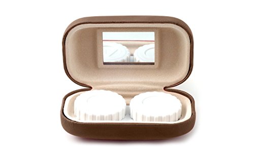 (Calabria)/Vision Care/Contact Lens Care/DIRECT FROM USA/Contact Lens Case Metal w/ Fabric Mirror in Matte Brown CLC4