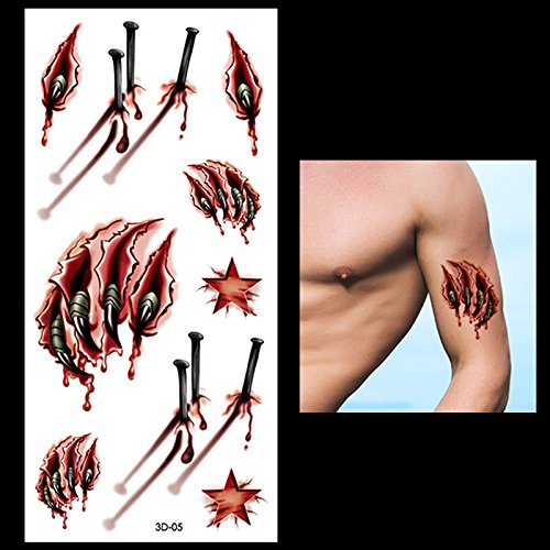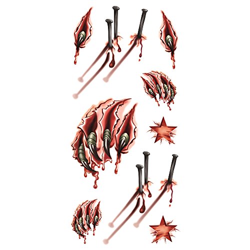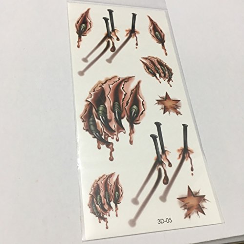 Oottati Halloween Collection - 3D Assorted Horror Nail Blood Scar Wound Temporary Tattoo