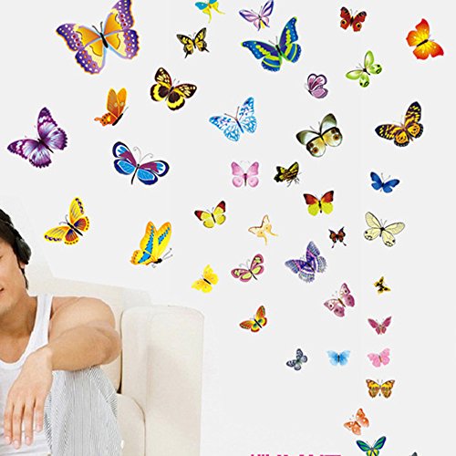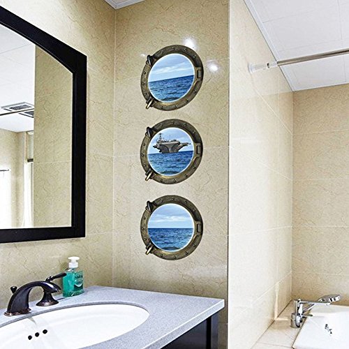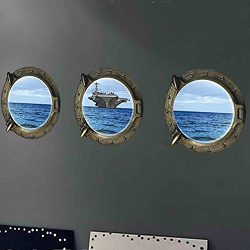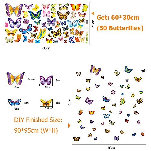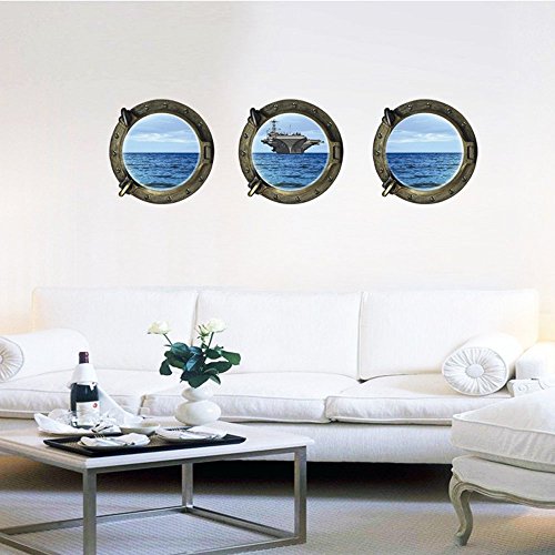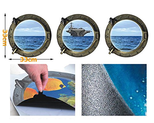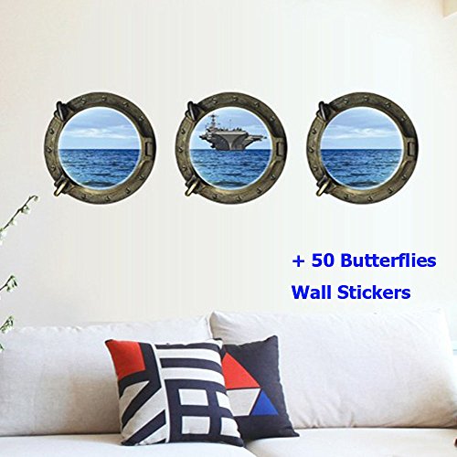 Alrens_DIY(TM) 50 Butterflies Wall Stickers + Sea Views 3D Fake Round Windows DIY Wall Sticker Mural Decal Removable Home Decoration Creative Art Living Room Children Decor for Kid's Gift