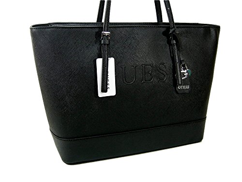 -. Brand : GUESS -. Color : Black -. Department : womens -. EAN : 0885935898928 -. Feature : Measures approximately 16 inches across by 11 inches high. / Top shoulder straps with a drop of 9 inches. / Full description below. -. ProductGroup : Shoes -. ProductTypeName : HANDBAG -. Size : Large -. Title : New Guess Logo Purse Satchel Hand Bag Peak Large Tote Black Silver Charms -. UPC : 885935898928