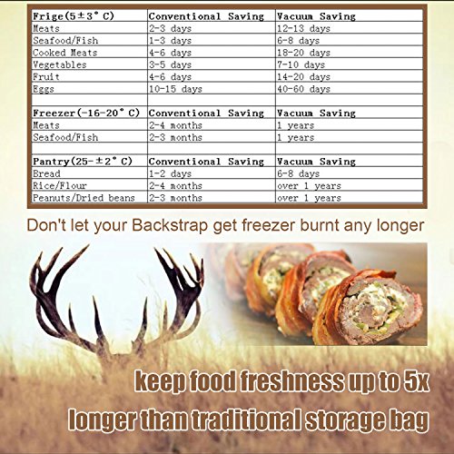 【KEEP FOOD NUTRITIOUS AND FRESH】: Just simply to store food in the refrigerator will cause food to lose it's flavor even begin to smell. Our food sealer machine helps to preserve your venison for year-round use. Our food vacuum sealer machine keep food nutrients intact and food freshness up to 5x longer than ordinary storage methods such as zip-lock bags, foil plastic wrap etc, which makes your cooking and meal preparation be more easier, more economical and faster, saving your time and money!