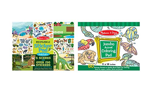 This exciting reusable sticker pad set helps busy kids' creative ideas really stick! Each pad includes five glossy, colorful background pages and plenty of cling-style stickers to fill them--then peel up and change again and again. The Vehicles pad features an airport, track tracks, harbor, construction site, and roadway to fill with over 165 stickers of cars, boats, people, and more. The Habitats pad features a farm, prehistoric landscape, desert oasis, jungle, and the deep blue sea, plus over 150 stickers of animals and people. My Town includes scenes of a school, grocery store, restaurant, hospital, and fire house, as well as over 200 stickers of people, vehicles, furniture, and accessories.Feature