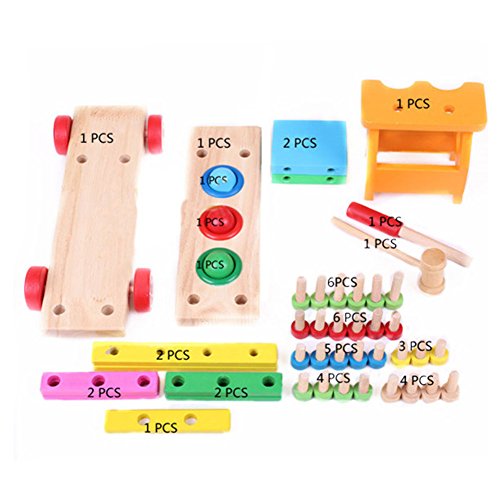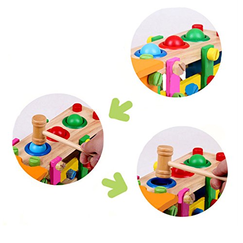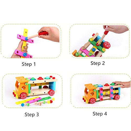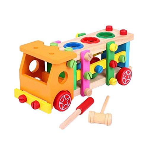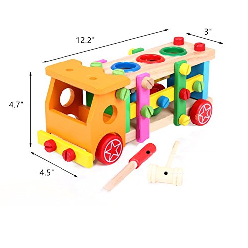 -. Feature : Product Dimension: 12.2" x 4.5" x 4.7" / Made of wood, durable and high quality, non-toxic and child safe materials / Before pounding the ball, children should build the car by screw nut and other pieces / Brightly colored, smooth-sanded pieces will help kids to improve the differentiation skills / Great gift for boys and girls, play in two ways: pounding toy and building toy