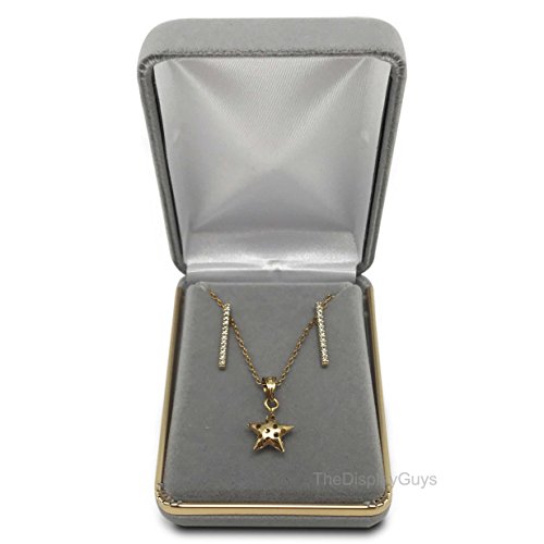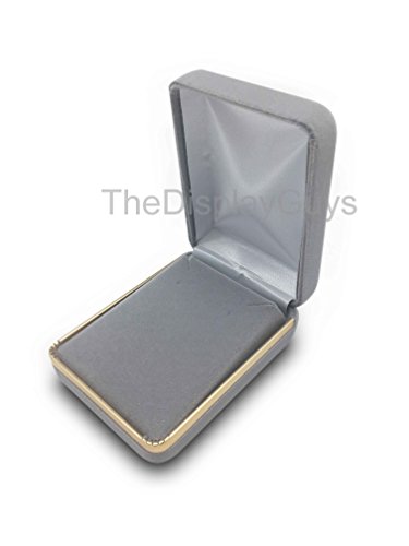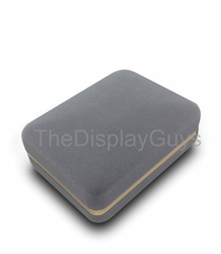 The Display Guys~ Deluxe Gray VELVET Pendant & Earring Gift Box, Jewelry Presentation Display Case with Gold Trim Metal Hinge (3x2 1/4x1 1/4 inch)