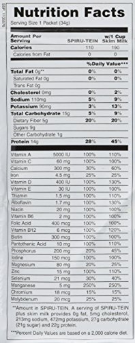 -. Feature : Spiru-Tein Energy Shakes now feature our pioneering, patent-pending Tri-Part Protein Blend of non-GMO rice protein, pea protein, and both non-fermented and fermented soy / Contains 14 grams of protein, each serving of Spiru-Tein is a high-protein energy meal / Each delicious flavor has been meticulously engineered to provide a broad range of minerals and an incredible 100% of the Daily Value of all vitamins