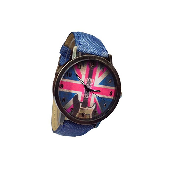 Meilleur reve(메이 자 리브)【선택가능 4색/2디자인】 국기 디자인 손목시계 시계 유니온 잭 맨즈 레이디스 유니섹스 캐주얼 빈티지 (01블루,영국)