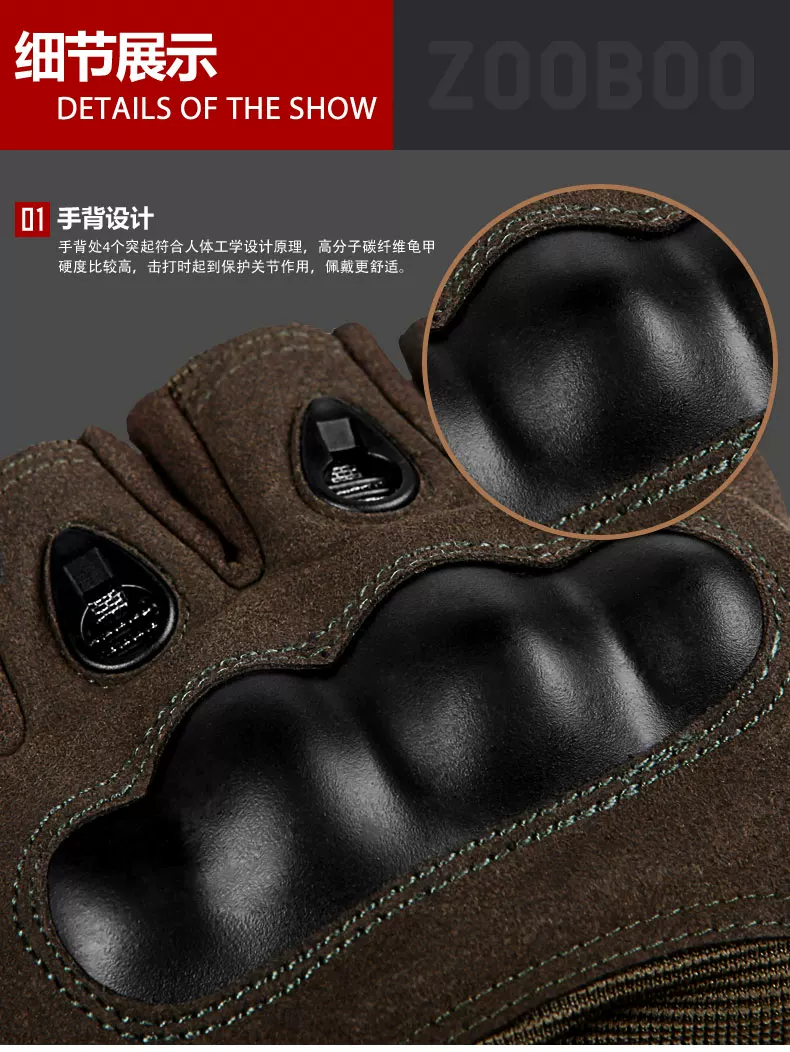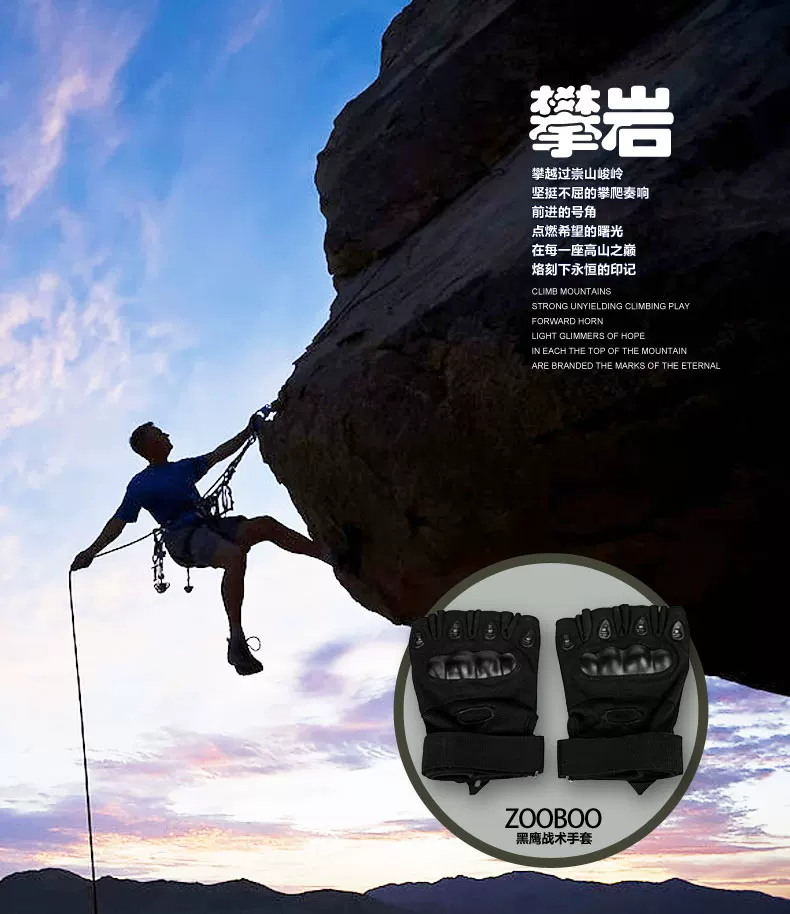 Zooboo战术手套户外防滑半指手套男作战黑鹰骑行手套耐磨防割半指