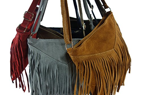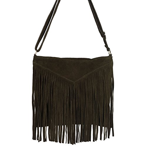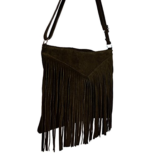 Beautiful Italian Suede Shoulder Bag/Tassel with Fringes, Carelli Italia PESARO brown TWEE