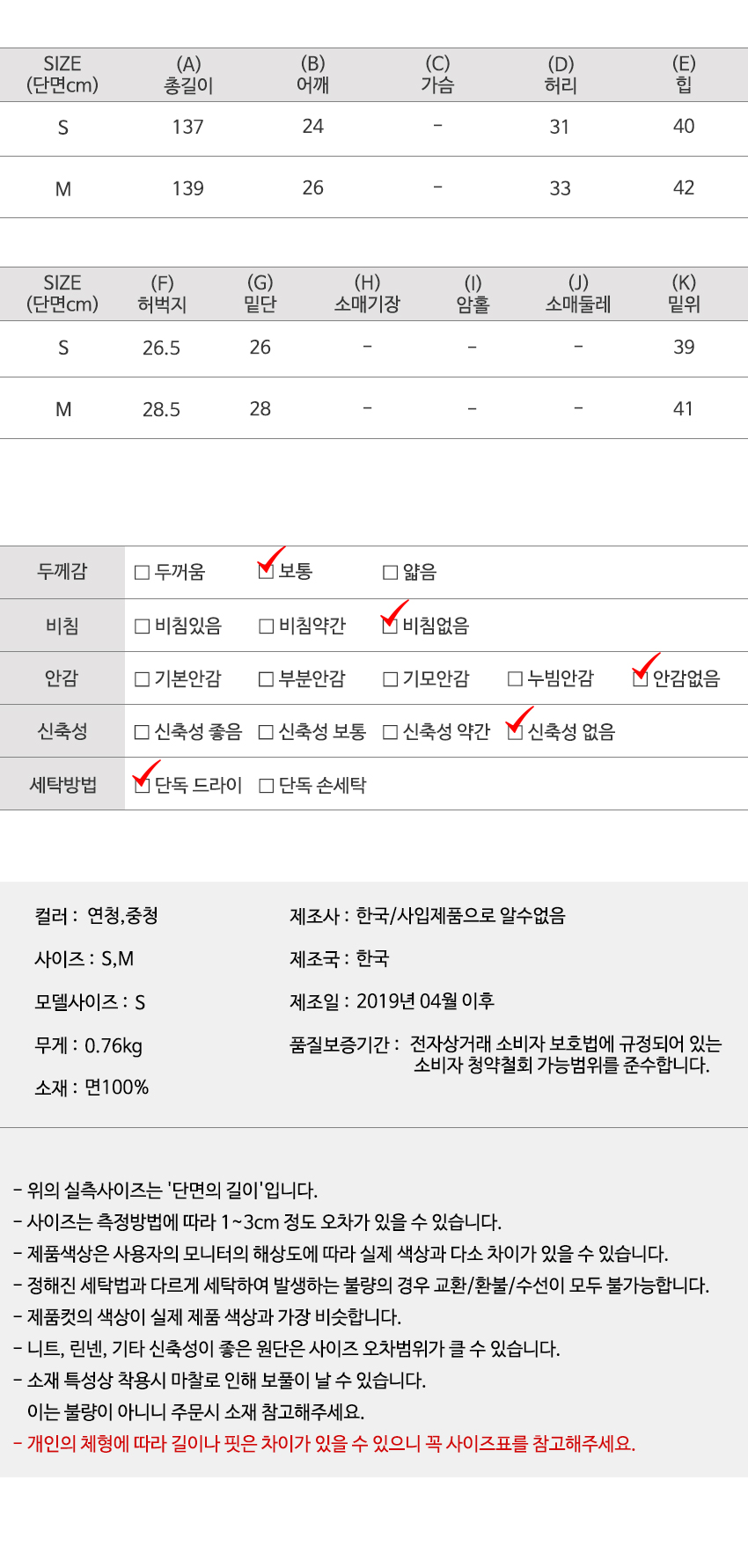 | 특이 사항 | 배송, 변경, 반품 환불에 대한 문의는 위 연락처로 문의 주세요. | ||