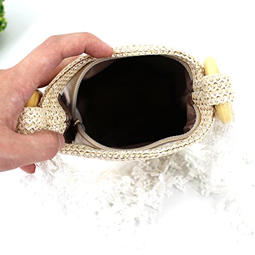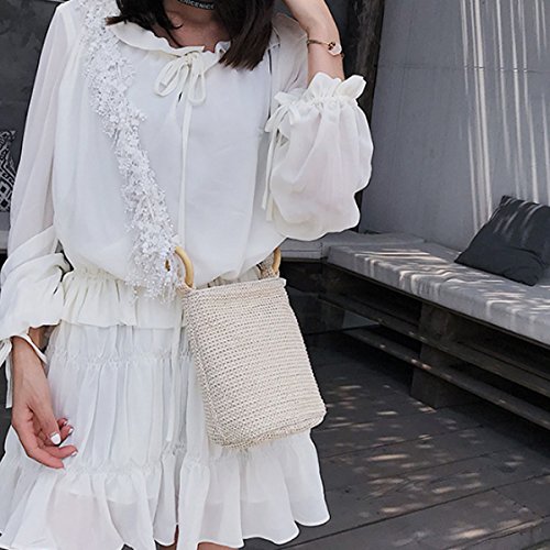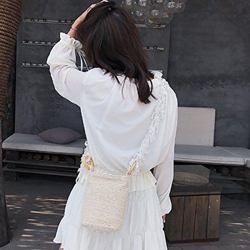 Editha Women Fashion Straw Weaving Handbag Small Tote Adjustable Cross-body Bag Satchel