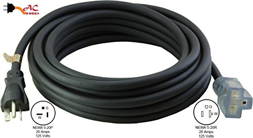 AC Connectors [S520PR-025] 25FT NEMA 5-20 20-Amp T-Blade Indoor/Outdoor SJTW 12/3 Anti-Cold Weather Extension Cord with power indicator light End