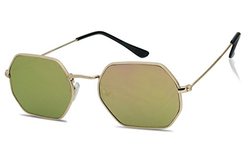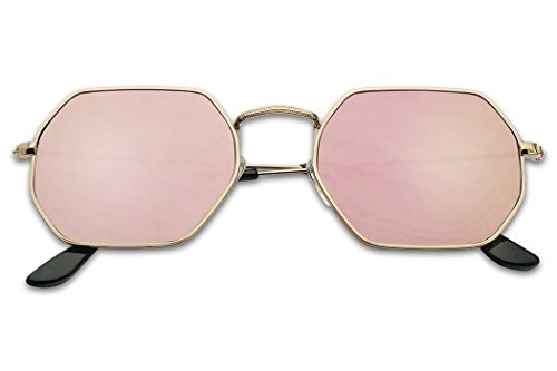 Modern Slim Metal Geometric Flat Mirrored Lens Unisex Octagon Style Sunglasses