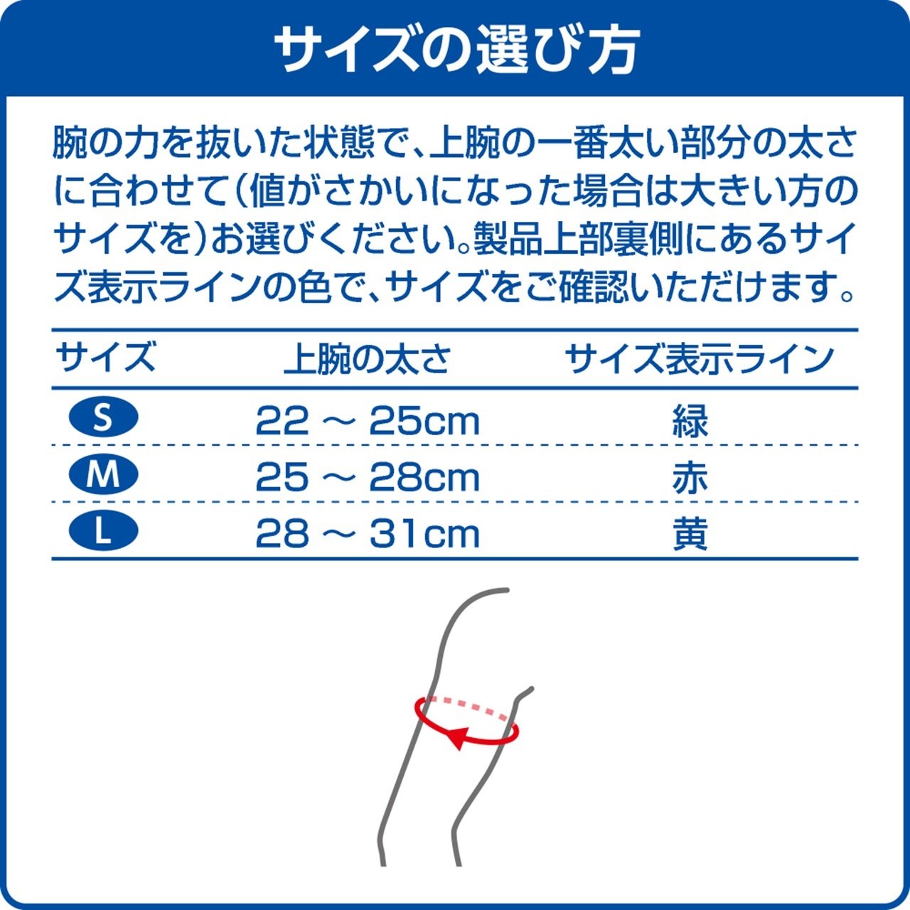 With the power of the arm pulled out, please choose according to the thickness of the thickest part of the upper arm (the size of the larger one if the value goes up).
