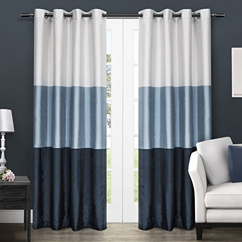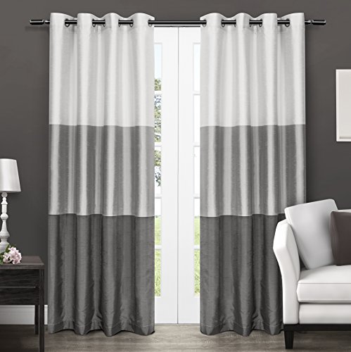The Chateau faux silk grommet top window curtain panels are the perfect compliment to any decor. The gradient colored wide stripes provide a bold, yet artistic statement to your any window. These beautiful panels are the ultimate finishing touch to beautify any window setting in your home, apartment, office, business, and more. The Chateau drapery is constructed with gorgeous matte silver grommets, fitting the curtain rod of your choice up to 15/8 inch in diameter. Impress your friends, family, and guests with these window curtain panels on any windowFeature