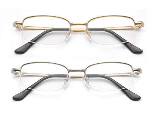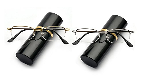 Outray 2 Pairs Metal Frame Spring Hinge Reading Glasses With Portable Aluminum Hard Case