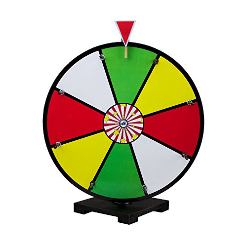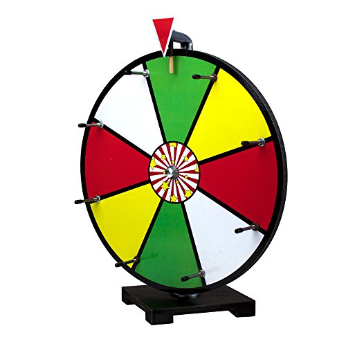 Need something new and exciting for an important business tradeshow, fundraiser, or annual meeting? Need a fun game for your child's birthday party or school carnival? Then you need Midway Monsters' 16" dry erase prize wheel. Featuring a face with eight colorful sections, digitally printed and sealed with dry erase laminate, this prize wheel is completely customizable for any event, just add a dry erase marker. Wipe clean with a dry cloth to use and reuse your wheel for countless different contests, promotions or parties. Each prize wheel is cut from 1/2" thick, pressure treated particle board, fluidly spins on a dual bearing hub, and stands on a stable 7" base. Fitted with sturdy steel pegs, the wheel produces loud, satisfying clicks when spun. Customers and party guests won't be able to resist taking a turn spinning this wonderfully colored wheel at your next event.