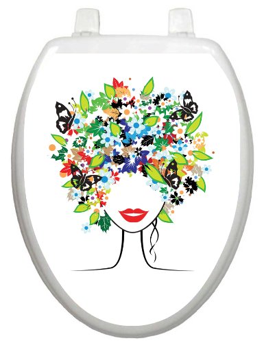 Toilet Tattoos TT-1021-O Spring Lady Decorative Applique For Toilet Lid, Elongated