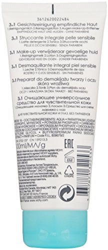 -. Binding : Health and Beauty -. Brand : Vichy -. EAN : 3606000477360 -. Feature : Hydrating face wash for dry skin and sensitive / 3-in-1 facial cleanser that acts as a face wash, make-up remover and facial toner / Face cleanser that is paraben free, fragrance free and non comedogenic / Daily face wash for all skin types including sensitive skin / All in one facial cleanser and makeup remover for every day use -. Label : Vichy -. Manufacturer : Vichy -. NumberOfItems : 1 -. PackageQuantity : 1 -. ProductGroup : Prestige Beauty -. ProductTypeName : LUXURY_BEAUTY -. Publisher : Vichy -. ReleaseDate : 2017-08-01 -. Studio : Vichy -. Title : Vichy Pureté Thermale 3-in-1 One Step Face Wash Cleanser for Sensitive Skin Paraben-free Alcohol-free, 3.3 fl. oz.