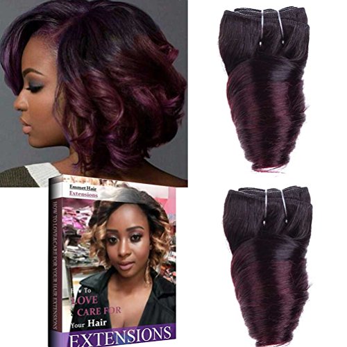 Emmet 8Inch Brazilian Loose Wave Spring Curly Hair Weaves for Bob Wave 2pcs/Lot 50g/pc 100% Human Hair Bob Wave Weft, with Hair Care Ebook (1B/99J)