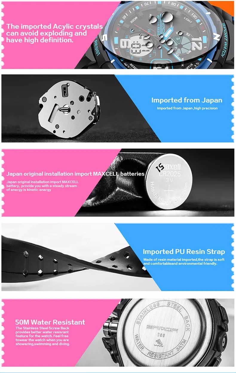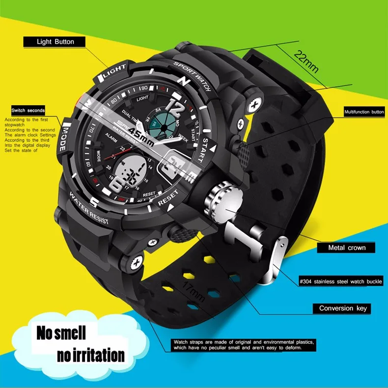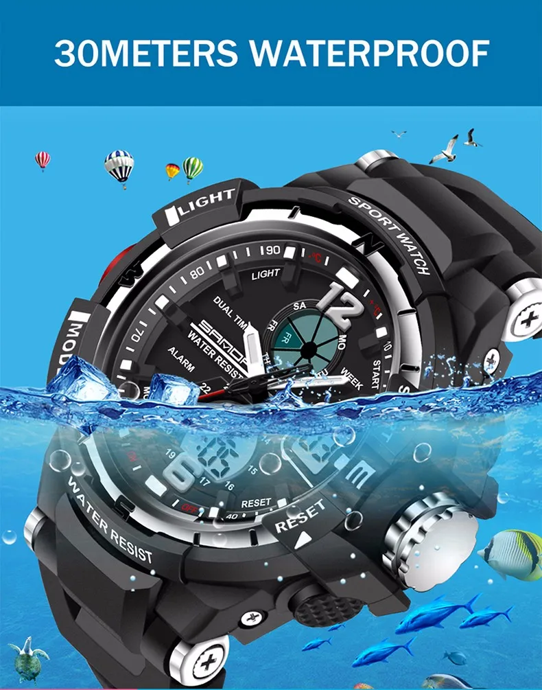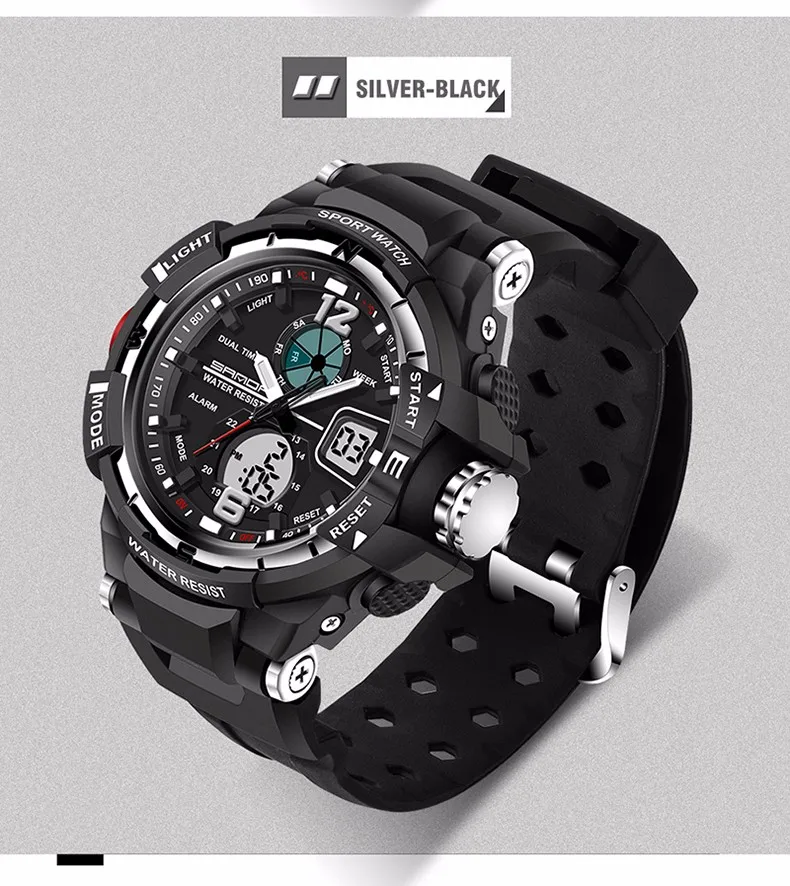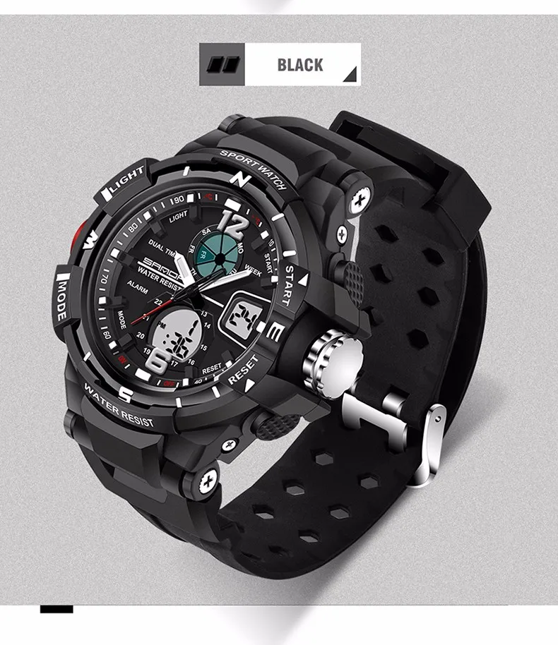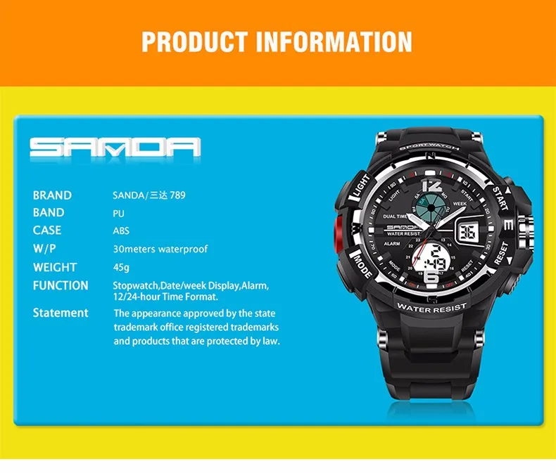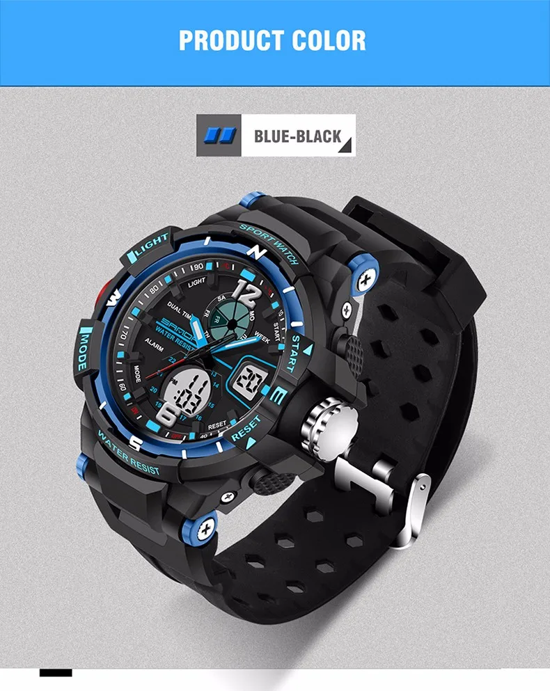 Feature:Water Resistant,LED display,Auto Date,Back Light,Complete Calendar,Shock Resistant,Alarm,Chronograph