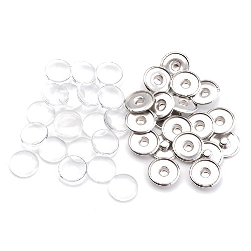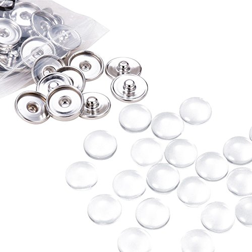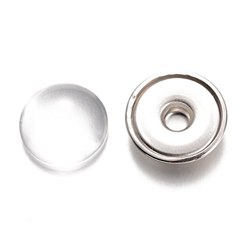 Pandahall 20 Sets Snap Button Making Brass Snap Buttons with Clear Glass Cabochons, Platinum, Clear, Button: 18x4mm; Knob: 6mm; Tray: 16mm; Glass Cabochon: 16x5.3mm