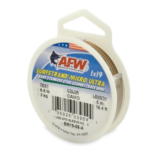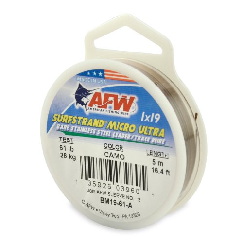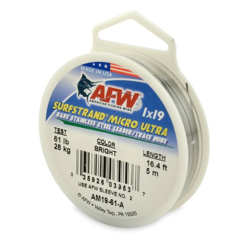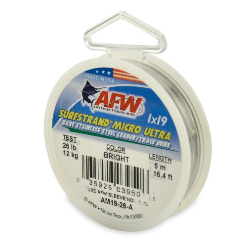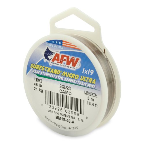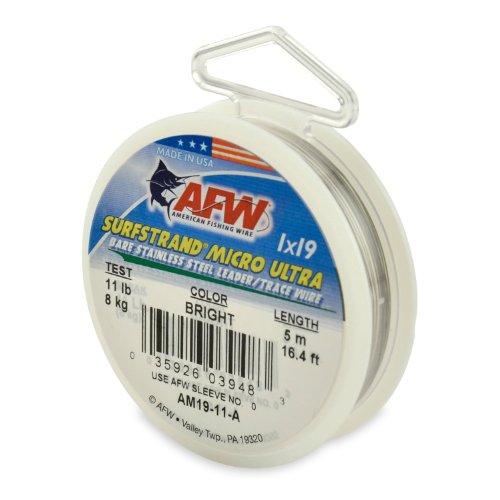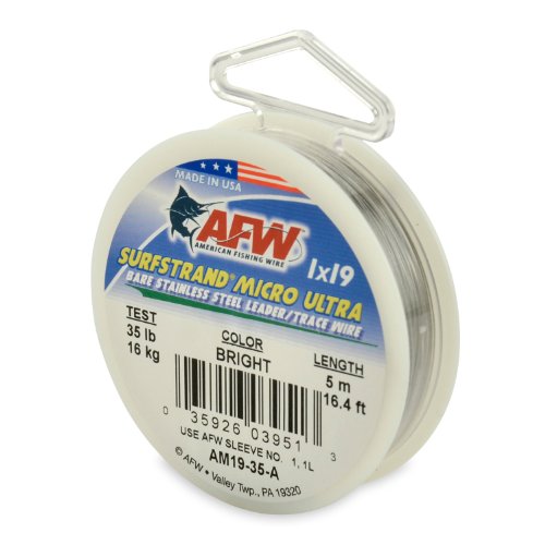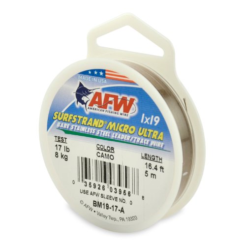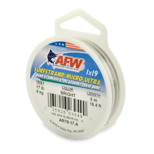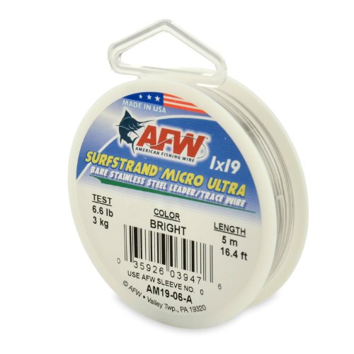 ReleaseDate : 2011-03-23 Studio : American Fishing Wire Publisher : American Fishing Wire Binding : Sports Product Description Surfstrand Micro Ultra is miniature diameter 1x19 stainless steel leader wire that is more flexible than 1x7, but not as flexible as 7x7. Surfstrand Micro Ultra is an wconomical alternative to Surfstrand Micro Supreme (above). This 19 Strand wire was originally designed for European Pike and Walleye (Zander) anglers. The extremely miniature diameters are practically invisible in the water. Ideal for catching toothy fish such as European Pike where delicate bait presentation is required. 0