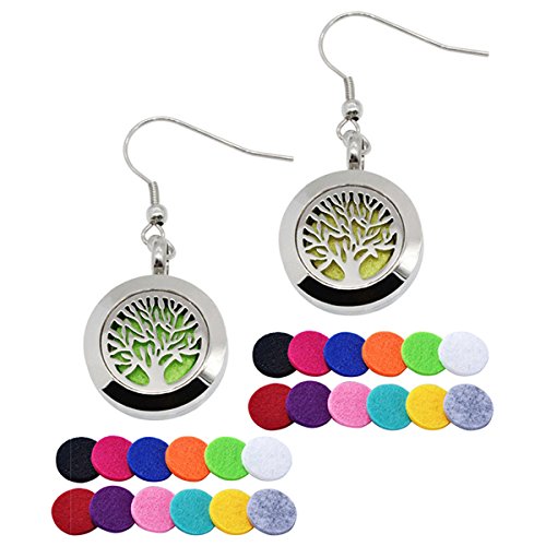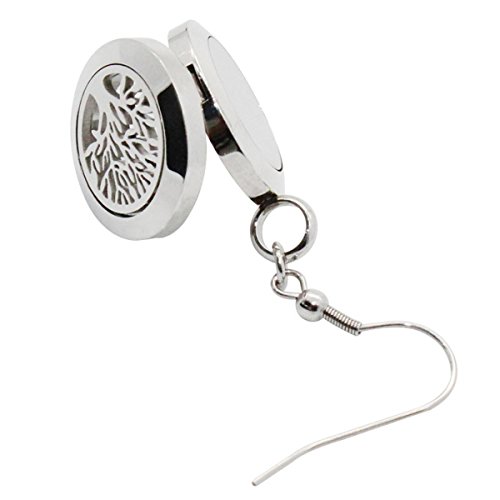 Tree of Life Aromatherapy Essential Oil Diffuser Dangle Earring Jewelry Stainless Steel Locket Earring 24 Refill Pads