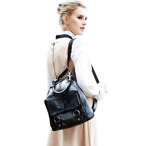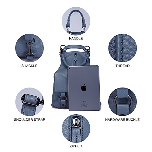 -. Feature : Full grain leather backpack purse for women,High quality golden hardware anti oxygenic.Created with 100% Genuine leather and Polyester lining.This womens real leather knapsack is durable and comfortable,perfect for college school as fashion bag,school bag,travel bag,daypack. / Womens leather backpack with soft back and top handle,Zipper closure with leather pull,1 back pocket.Portable and designed for the safety of your properties.Large capacity:(L)11.8" * (H) 12.5" * (W) 5.9"inch Weight:1.98 pounds. / The real leather bag contain 1 generous pocket,1 inner zippered pocket and 1 compartment zipper pocket.Have phone slot and card slot.Easily carry your mobile phone(iPhone 6/6s/6plus/7/7plus),wallet,cosmetic,IPAD,umbrella and other daily essential things,but can't hold the laptop or A4 magazine. It's a great leather shoulder bag,daypack. / Zipper closure,Shoulder bag with buckle fastening adjustable shoulder strap and can be changed to be used as:Backpack,Shoulder Bag,Handbag,Sling Bag or a Hobo.The straps are very comfortable and sturdy,can be last long time. / Famous brand,Designer backpack for women.Handmade by professional artisans.The front metal button have two ways to lock,showing different shapes.Elegant, Fashion, casual and luxury.Fit for traveling,work place,dating,shopping.Great gift for your female friend, it will be a SurP.R.Ise