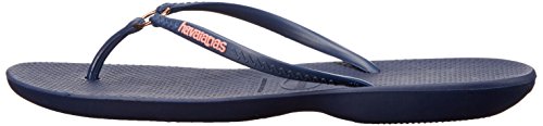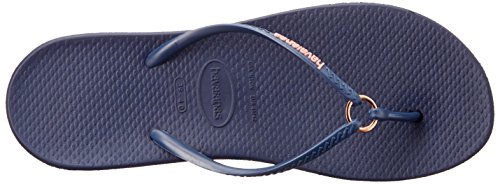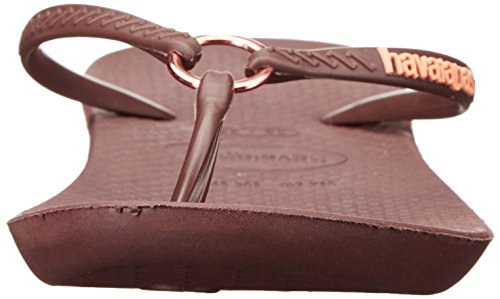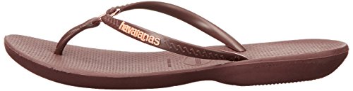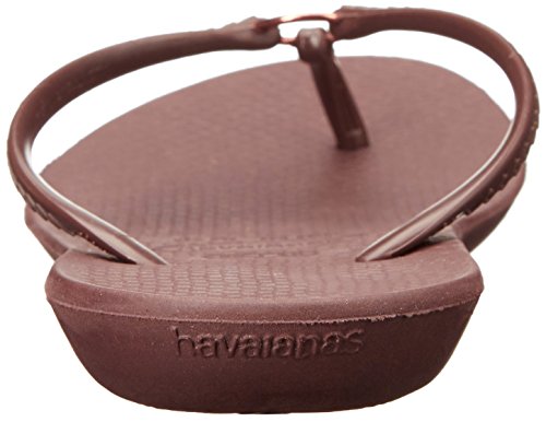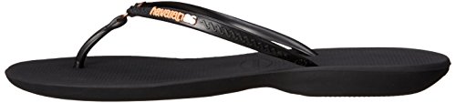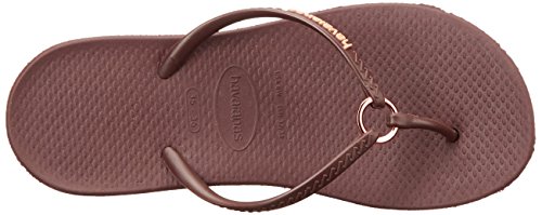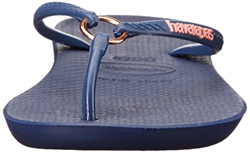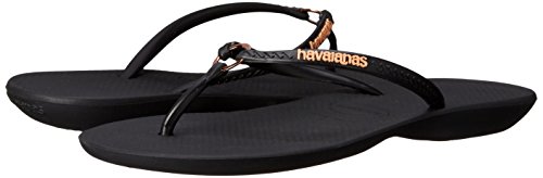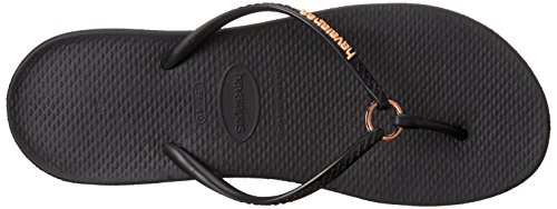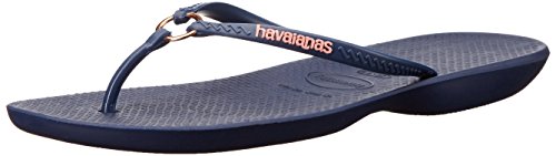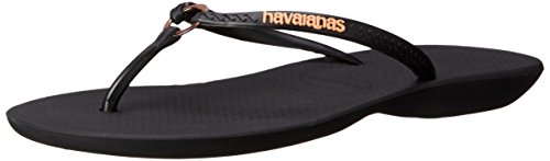 Product Description Features an all-new shape and an injected sole that combines with our signature textured footbed for extra comfort. Chic design comes courtesy of a sleek strap with a metal ring accent and a tonal Havaianas logo. 0
