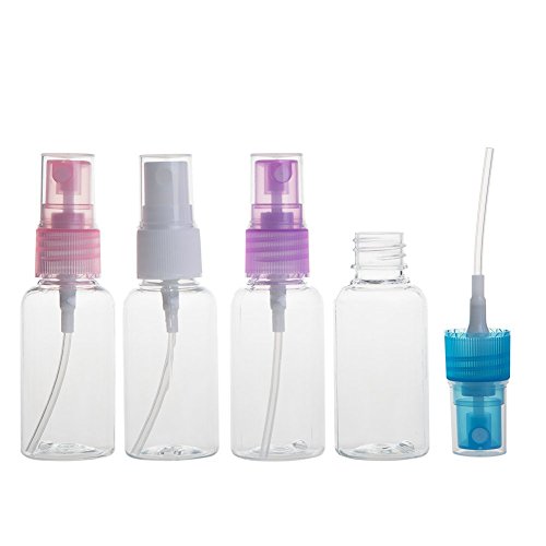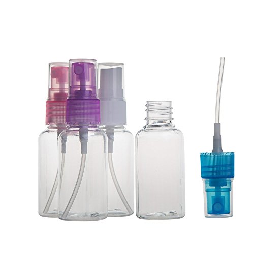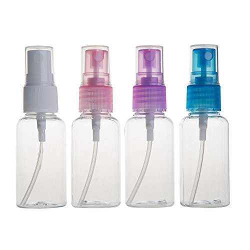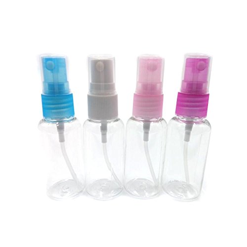 AKOAK 1 Set of 4 Pcs 30ml Transparent Plastic Refillable Fine Mist Perfume Makeup Empty Spray Bottles,Colorized Sprayers
