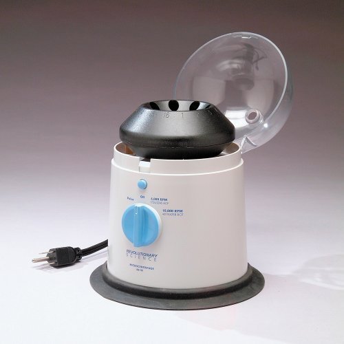 An inexpensive microcentrifuge with excellent features, the RS-102 is 9" H and 7" in diameter with 3 speed selections (pulse; 6,000 rpm; and 10,000 rpm). It can generate 6,238 maximum g force. Oversized soft rubber base efficiently absorbs vibration, reduces noise and vibration transmitted to bench, stops bench walking, resists tipping, and absorbs impact from careless handling. Comes with 1 rotor that spins up to sixteen 1.5- or 2.0-mL tubes. Rotor to accommodate four 0.2-mL strip tubes sold separately (item #214074). Wt, 5 lb. Two-year manufacturer's warranty (repair or replacement). Revolutionary Science is an ISO 9001:2008-certified company. Made in USA. 0 |
