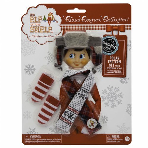Scout elves can bundle up for the North Pole weather in style with this winter set, featuring a plaid ear flap cap, reversible scarf and socks striped like candy canes! The double-sided scarf is printed with two fun patterns, while the faux fur-trimmed cap is the perfect finishing touch to an elf's wintertime look. Whether on the front lines of a snowball fight or building a snowman, elves won't get nipped by the sharp arctic air in this cozy accessory set.Feature