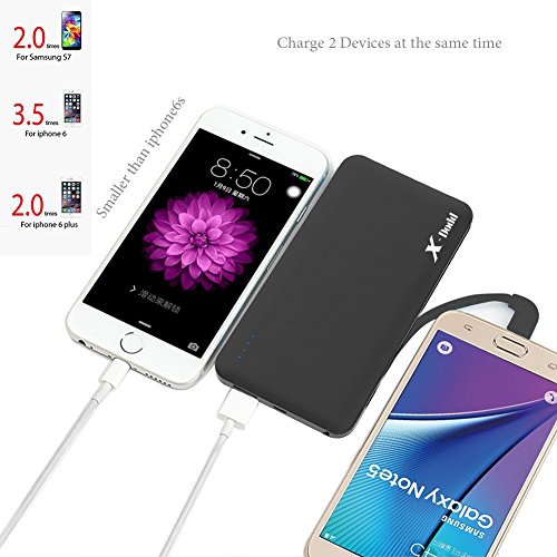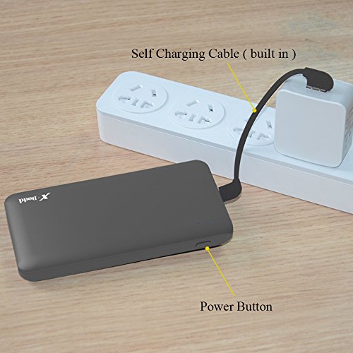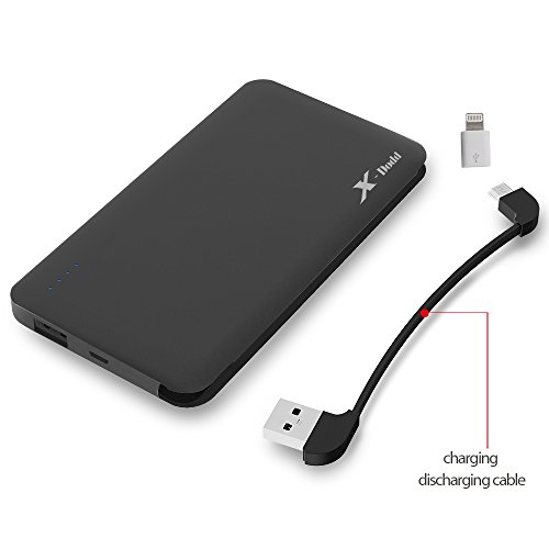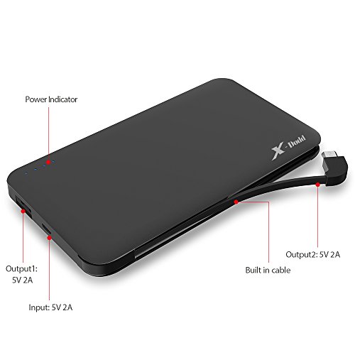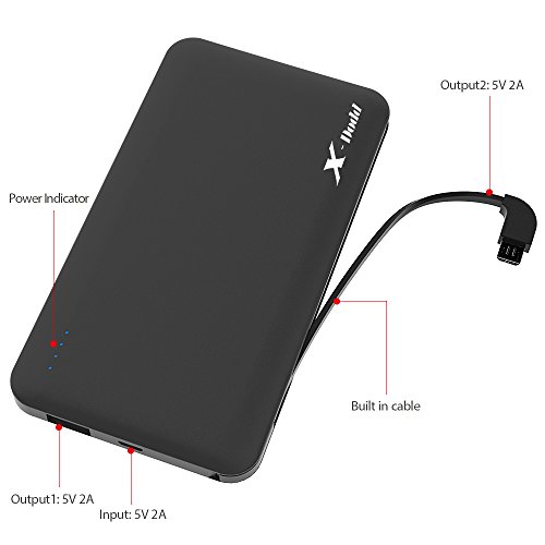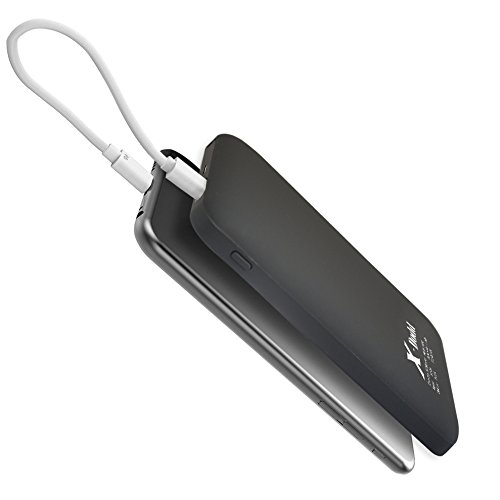 -. Feature : 1. Compact sleek design : Smaller than iphone6, slim as your phone, you can put it into your pocket easily.Built in cable can charge phone,also charge power bank , don't need to carry extra cables. Soft-Skin Smooth Finish ,comfortable and pleasant. / 2. High Capacity portable cell phone charger : 10000mAh Perfect battery backup for playing Pokemon Go.Recharge iPhone 6 and 6s 3.5 times,6Plus 2 times,Galaxy S7 2 times and S6 2.5 times. / 3. Fast Battery Chargers : Two Output : 5V 2A design to save time charging your devices,2A input means Recharge itself only 6.5 hours by using 2A adapter. (NOT INCLUDED) / 4. Multi-Safeguard Design :commitment to premium battery quality:Grade A polymer ensures reliability; 1000 + recharger cycles over the life of the battery; commitment to premium technology: uses samsung chipset solution, providing 9 layers of circuit protection & smart power detection at maximum charging efficiency. / 5. What You Get : 1*Power Bank (build in Cable),1*Travel Pouch,1*User Manual, 1*Lightning Adapter for iphone.our fan-favorite 12-month warranty Without Artifical Damage and friendly customer service.